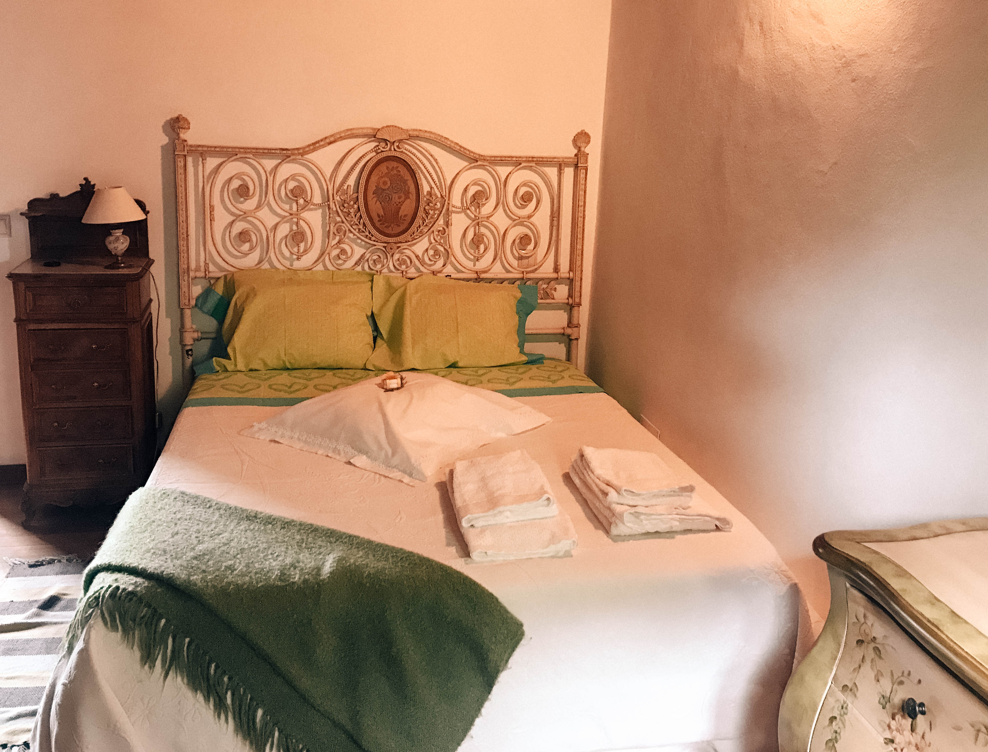 Na casa de campo encontra-se cozinha, salão com zona de jantar e de estar com fogão de sala e um sofá cama e casa de banho social no rés-do-chão. No primeiro andar existem três quartos com cama de casal, um deles com varanda. Junto a esta casa, existe uma outra com um quarto de casal disponível com porta exterior. No antigo celeiro recuperado de forma rústica, é possível encontrar um T2 com sala e cozinha. A propriedade dispõe também de um estúdio, num contentor recuperado e alterado, com um beliche, uma casa de banho e uma kitchenette.