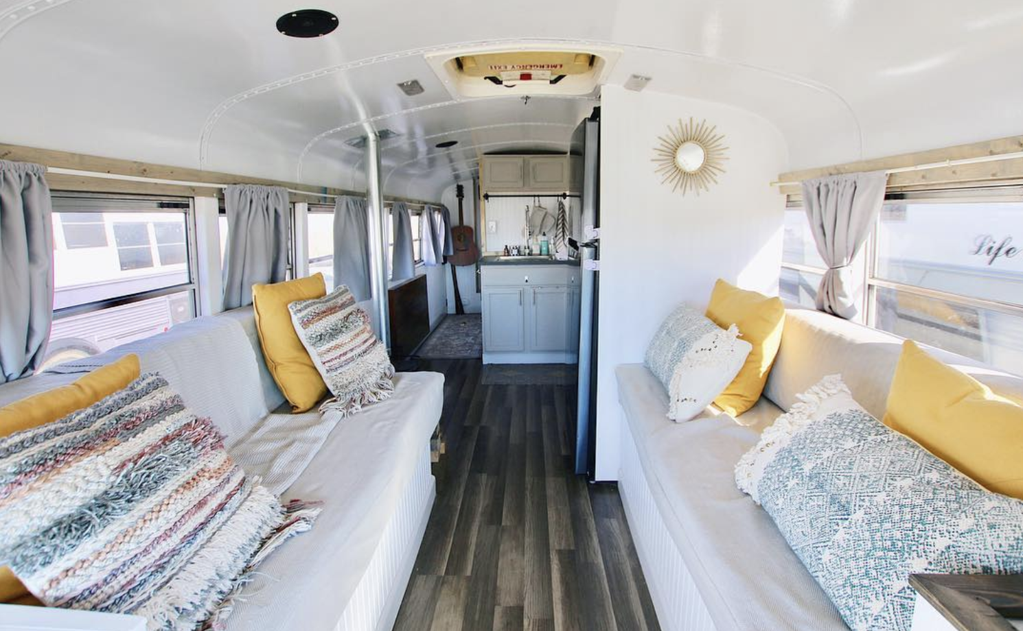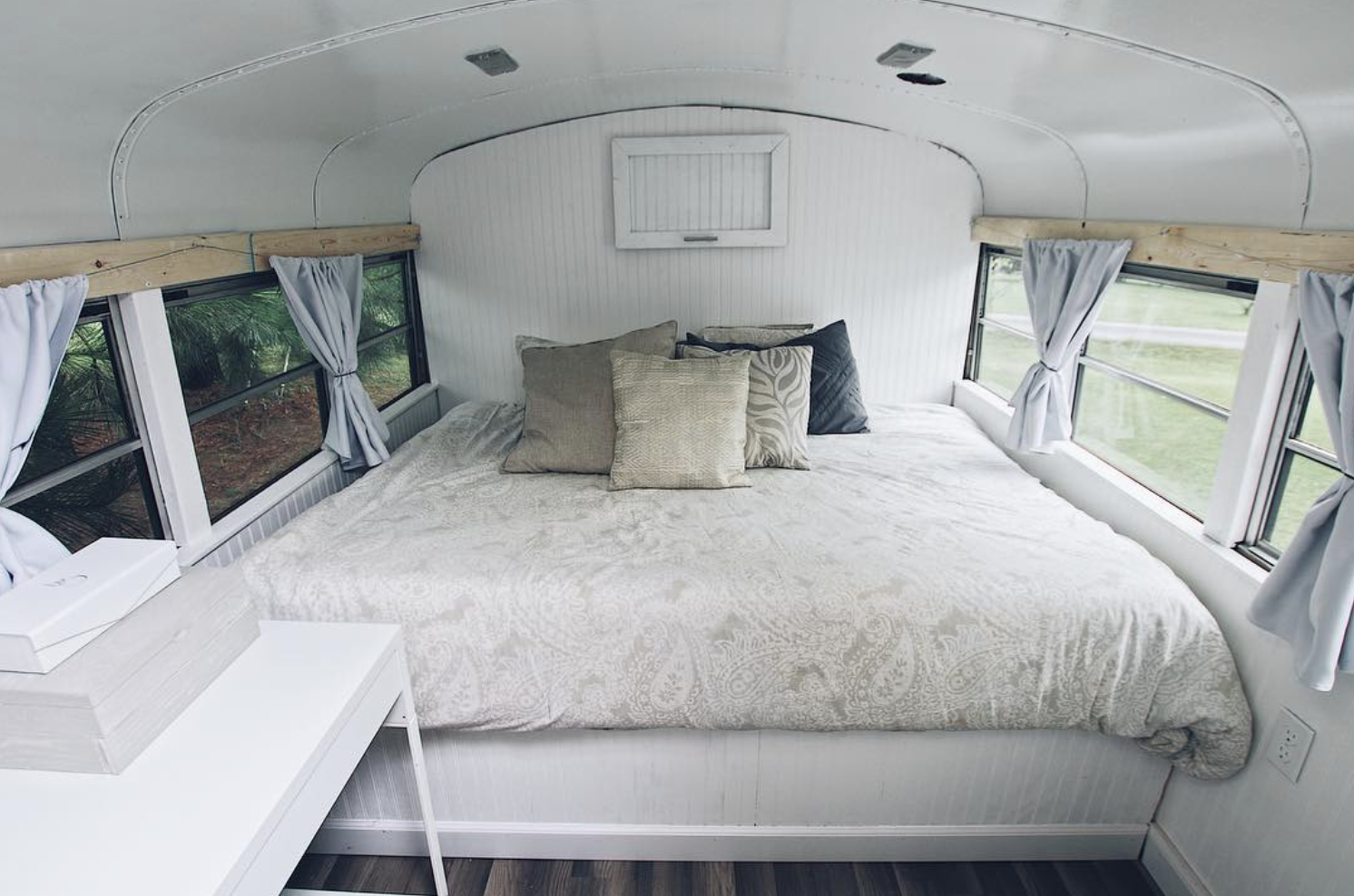 Chase Green, de 28 anos, e Mariajosé Trejo, de 25, passaram quatro meses e investiram mais de 14 mil euros a transformar um autocarro escolar numa verdadeira casa sobre rodas. Toda a transformação foi feita por eles, seguindo tutoriais no YouTube. A nova casa tem um oitavo do tamanho da casa antiga, mas conseguiram equipá-la com todos os elementos essenciais - uma cama king size, casa de banho com chuveiro, tanque de água de 100 litros, painéis solares, frigorífico e até uma pia de cozinha.