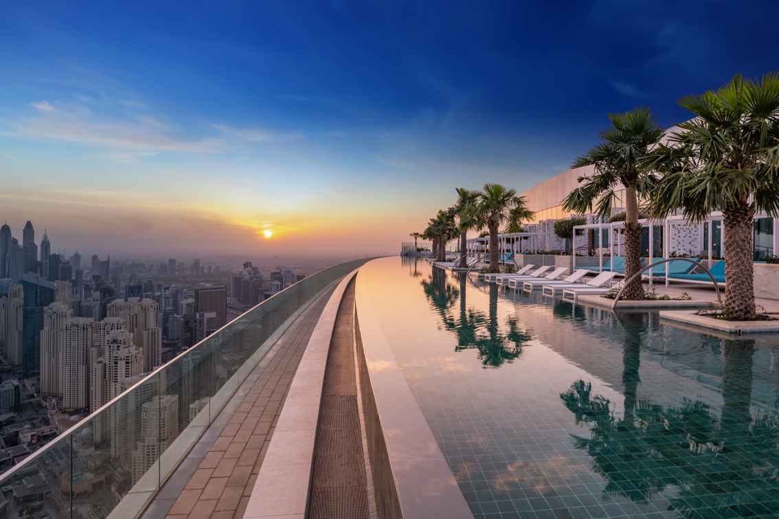 Nomeada como a piscina infinita mais alta do mundo dentro de um edifício, a piscina na cobertura do recém-inaugurado Address Beach Resort tem 293,906 metros de altura. Com 94,84 metros de comprimento e 16,5 metros de largura, tem quase o dobro do tamanho de uma piscina olímpica.